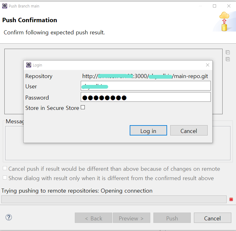 Git staging탭에서 우측 하단에 있는 Push Head.. 버튼을 클릭하면 아래 창이 뜬다.
