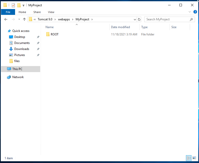 (나의 경우는 C:\Program Files\Apache Software Foundation\Tomcat 9.0\webapps\MyProject\ROOT)